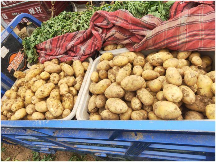 “我家的土豆比别人家的每斤多卖1毛5,5亩地就多卖6000多块。”种植户袁大哥自豪地说,“今年用芭田黄金甲种出来的土豆颜色金黄,大小匀称,小果少,商品率高,品质好。我们这边土豆平均亩产在5500-6500斤,我家的亩产能达到8700斤。每亩比其他人家的足足多收2000斤,5亩地增产增收7000块。算上多卖的6000多元,今年5亩土豆估计总共增收1.3万元。”