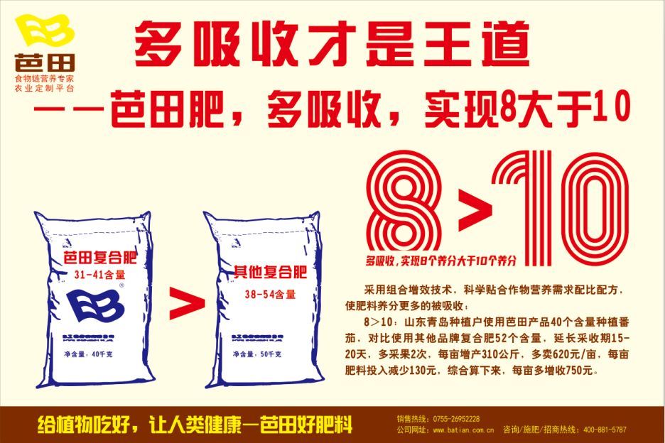 “作为国内知名肥料企业代表,芭田股份始终践行食物链营养专家的使命,倡导“缺啥,补啥,吃好不浪费,吃好人健康”的施肥理念。坚持从食物链源头做起,通过产品与技术创新,发展营养均衡全面、安全高效的肥料,确保粮食、食品的营养与安全。为此,芭田成立了国内第一家钙镁磷肥研究中心、全国农化服务中心。2019年,聘请了著名土壤科学家、中国科学院院士赵其国为首席技术顾问专家。2020年,国家粮食产业(功能稻米)技术创新中心土壤养分创新深圳中心正式落户芭田,为芭田进一步研发、生产功能型产品提供了强有力的技术支撑。”芭田股份品牌部经理周嘉芸表示。