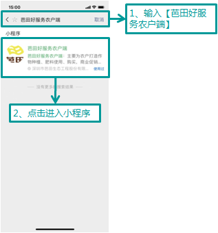 或者下拉微信界面,找到“芭田好服务农户端”小程序