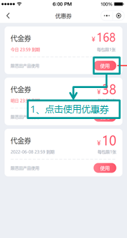 步骤4:到零售店购买芭田品牌产品时点击使用代金券,出示二维码即可直接抵扣。