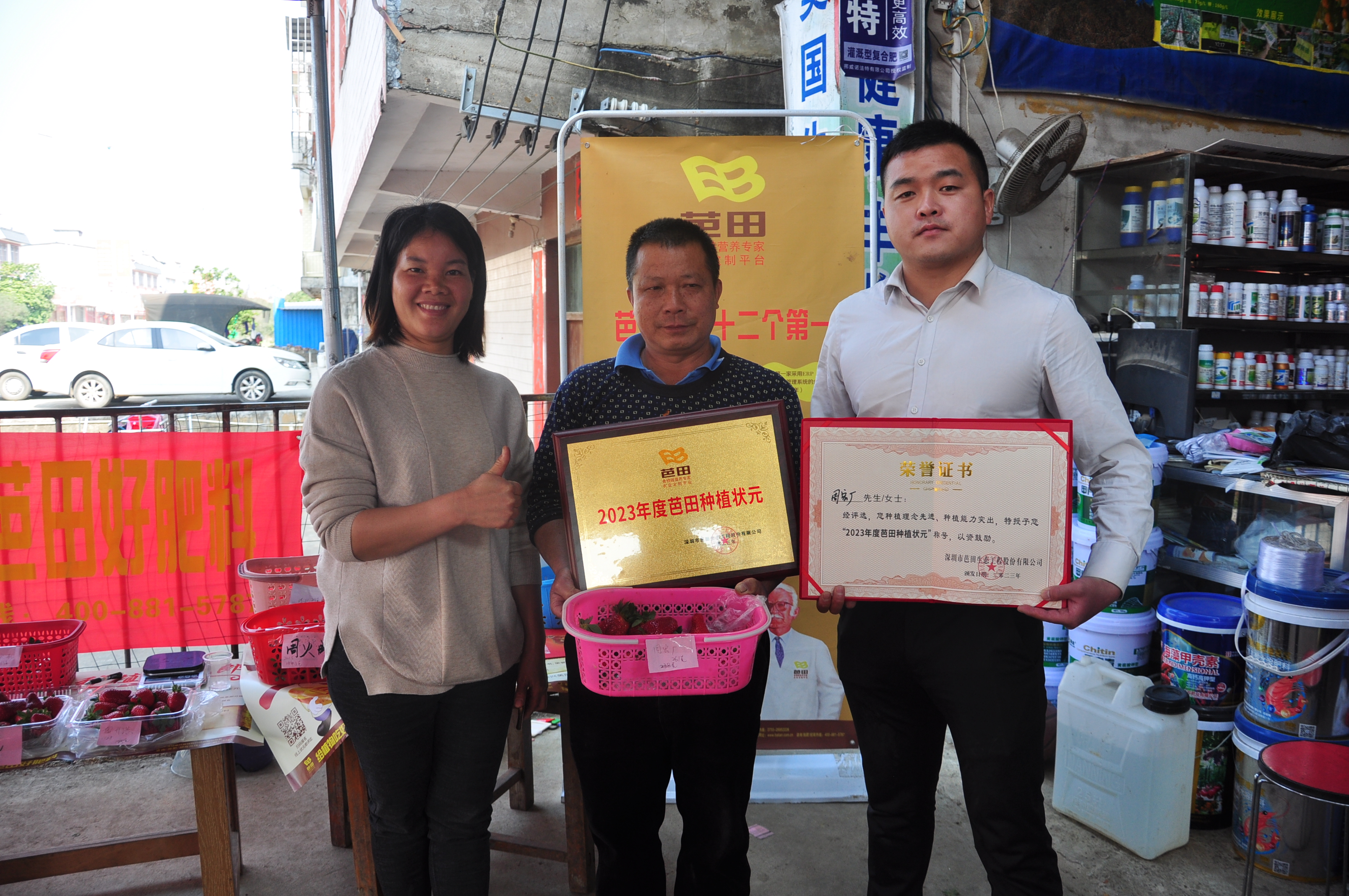 当天上午,芭田工作人员为此次活动的种植状元周宏厂颁发了肥料奖品及“2023年度种植状元”的荣誉奖牌和证书,并鼓励他继续用好肥,种优质农产品。