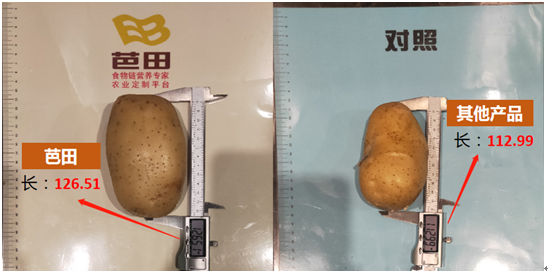 在收获期,施用芭田肥料种植出来的马铃薯不管是在产量,还是品质方面,都远远优于施用其他产品种植出来的马铃薯。芭田薯朋乐每亩比对照增产260斤,芭田的商品率92.3%(对照的89.6%),每亩增收390元。