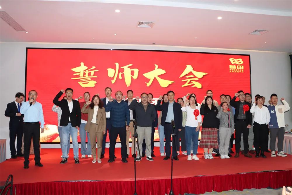 誓师大会环节,生产基地、创新团队及后勤团队负责人分别在副总裁冯军强、副总裁华建青以及常务副总裁吴益辉的带领下,依次上台誓师,庄重承诺“说得出,做得到,坚决完成目标,永不放弃”。嘹亮的誓言响彻会场,震人心扉,展现了芭田人敢抢敢拼、实干崇实、积极自信的精神风貌,也流露出芭田人对未来满怀信心和希望。