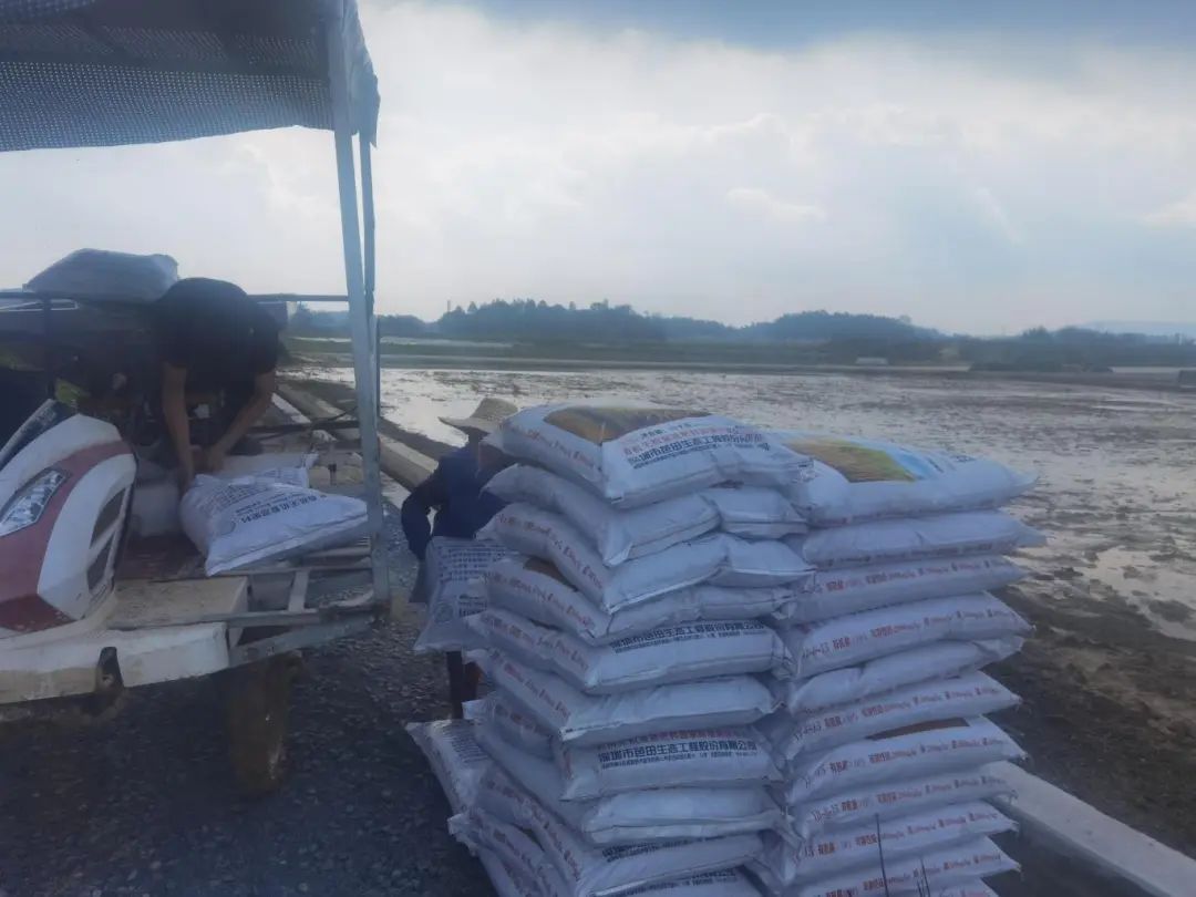 人勤春来早,施肥育秧忙!近日,开平市塘口镇的千亩水稻基地热闹非凡、田地里,拖拉机、旋耕机在轰鸣声中犁田、翻地,路旁一堆堆芭田有机无机Ⅲ型水稻肥(18-8-15)整齐码放,工作人员正在装运、拆包,施用底肥。
