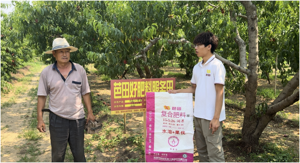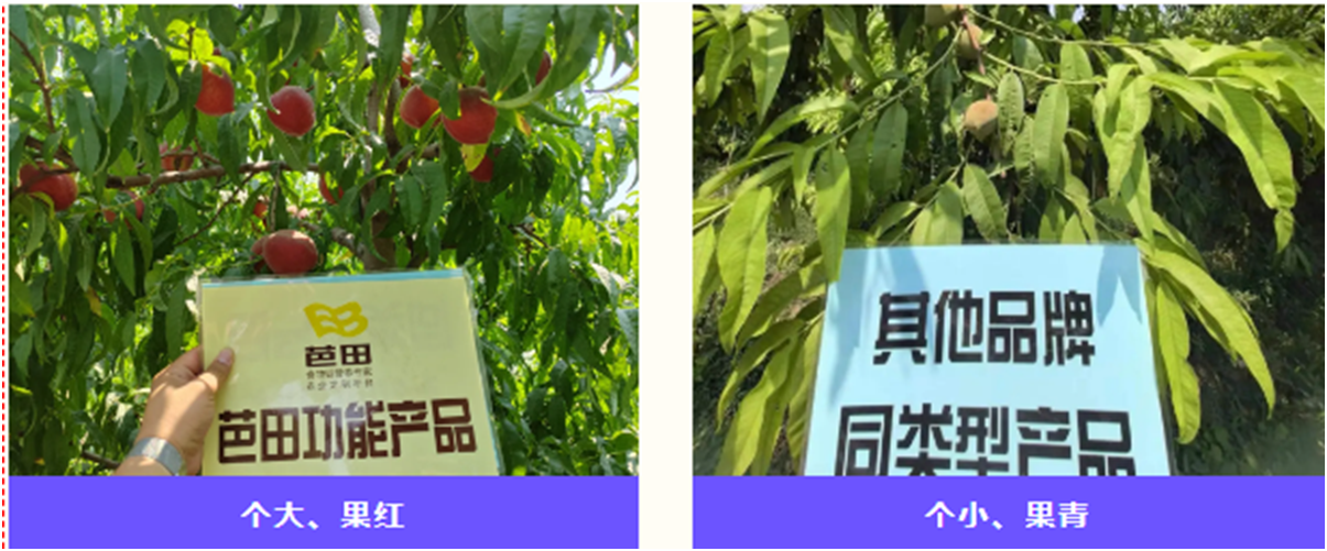 近日,芭田服务人员拜访李大哥发现他桃园的蜜桃呈现出两种截然不同的品质。使用芭田润果复肥的蜜桃个大、果红、蜜香味十足,而使用其他品牌复肥的蜜桃个小、果青、蜜香味淡。